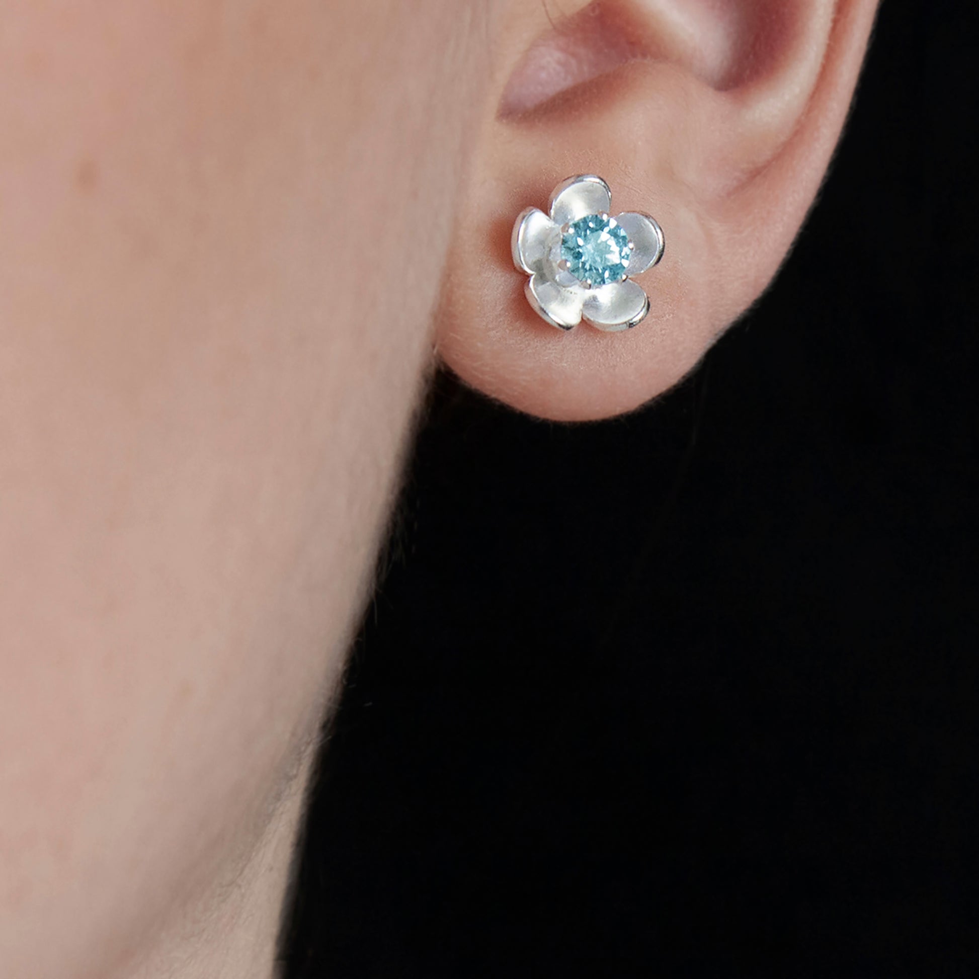 silver flower stud earrings with choice of birthstone